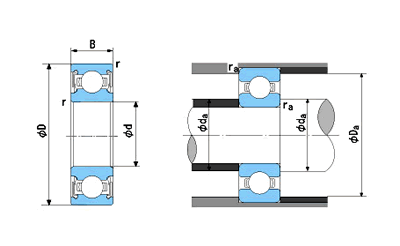 額定動負荷: 122000 額定靜負荷: 93000 極限轉速(潤滑脂潤滑): 2300
