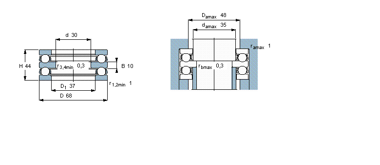 | 30 | 68 | 44 | 49,4 | 96,5 | 3,55 | 0,048 | 3200 | 4500 | 0,68 | 52307 | |
