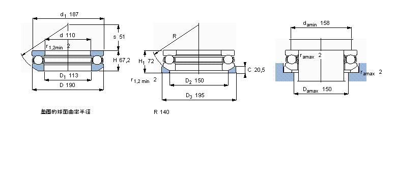 | 推力球軸承, 單向,帶球面軸承座墊圈 | ||||||||||||