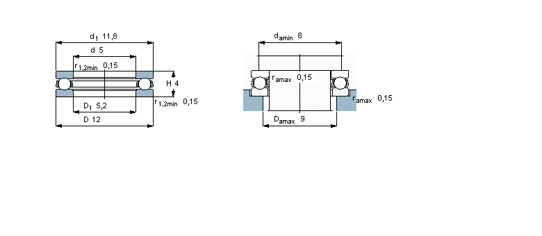| 推力球軸承, 單向 | |||||||||||