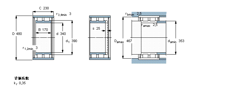 | 圓柱滾子軸承, 雙列滿(mǎn)裝滾子, 無(wú)密封件, 沒(méi)有載荷支承能力 | ||||||||||