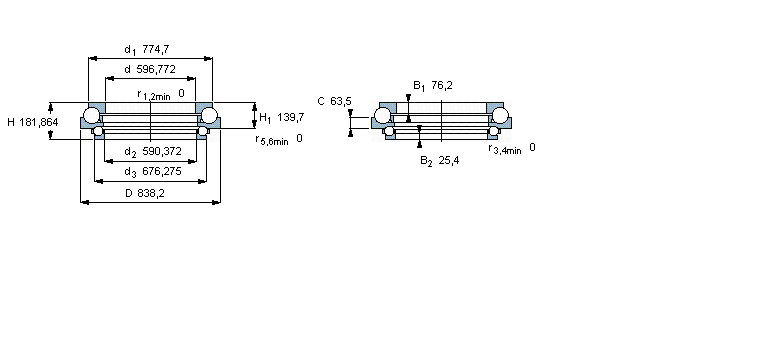 | 角接觸推力球軸承, 雙向 | |||||||||||