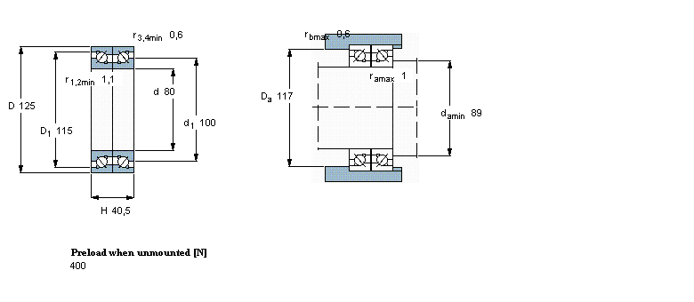 | 雙向, 精密,高精度軸承, BTM .. B design, 40°, hybrid, preload A | |||||||||||