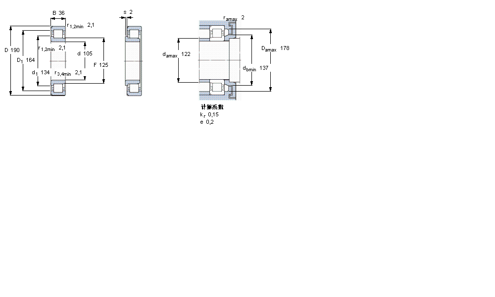 | 105 | 190 | 36 | 300 | 315 | 36,5 | 3800 | 6300 | 4,10 | NJ 221 ECN2ML * | - | ||