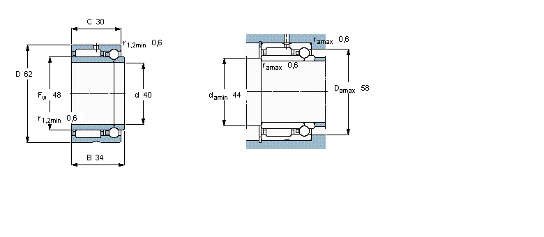 | 組合式滾針軸承, 滾針/角接觸球軸承, 軸向負(fù)荷 雙向 | |||||||||||||