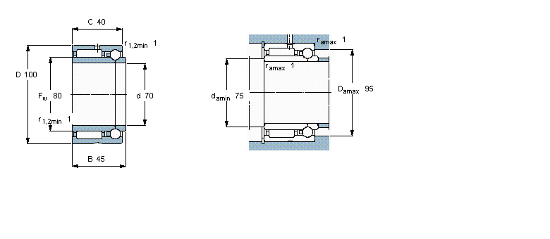 | 組合式滾針軸承, 滾針/角接觸球軸承, 軸向負荷 雙向 | |||||||||||||