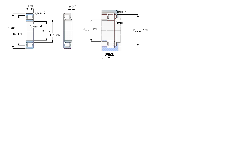| 圓柱滾子軸承, 單列, NU 設(shè)計(jì), 于外圈的一個(gè)帶定位槽 | ||||||||||||