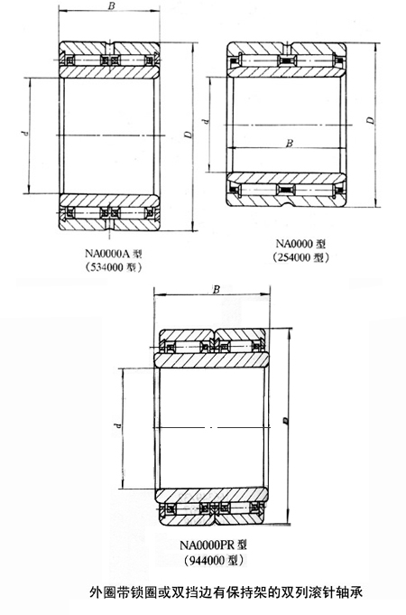外圈帶鎖圈或雙擋邊有保持架的雙列滾針軸承樣本