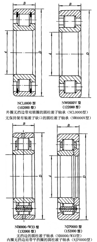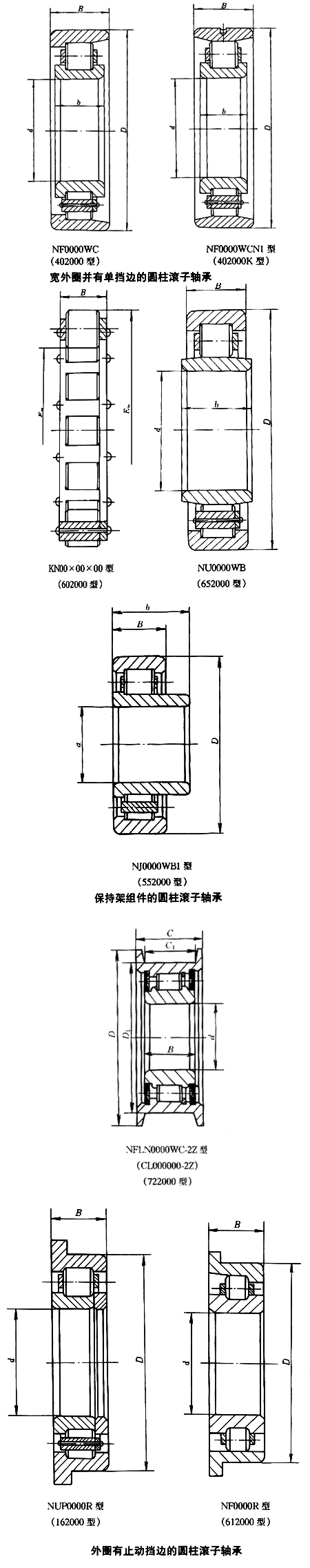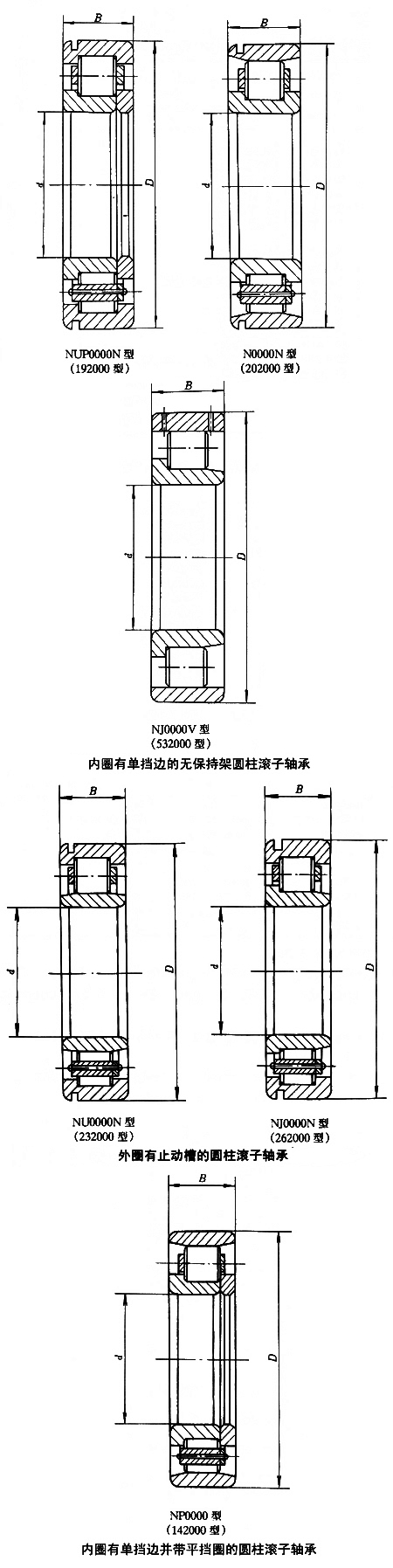 內(nèi)圈有單擋邊的圓柱滾子軸承(NJ0000型)樣本 |  內(nèi)圈無擋邊的圓柱子滾子軸承(NU0000型)樣本 |  外圈有單擋邊的圓柱滾子軸承樣本 |  外圈無擋邊的圓柱滾子軸承(N0000型)樣本 |